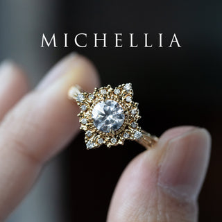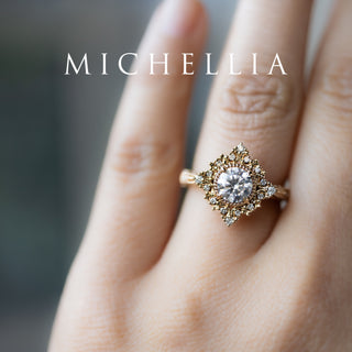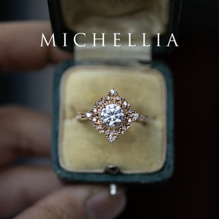 Framed by delicate retro-inspired filigree and sparkling accent diamonds, this OOAK Michellia masterpiece is a tribute to the golden era’s daring artistry and timeless romance. Crafted for modern dreamers whose hearts are forever captivated by the forgotten beauty of the past.
