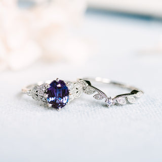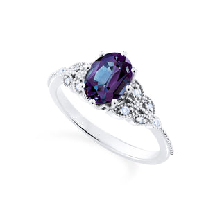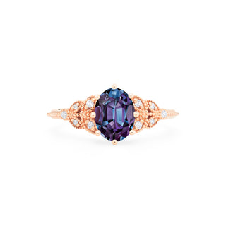 Olivia Classic Floral Oval Engagement Ring in Lab Alexandrite | R2005