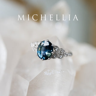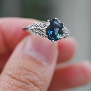 Olivia Enchanted Forest Natural 1.80ct Teal Sapphire Oval Floral Engagement Ring, 14K White Gold - One of A Kind & Ready-to-Ship