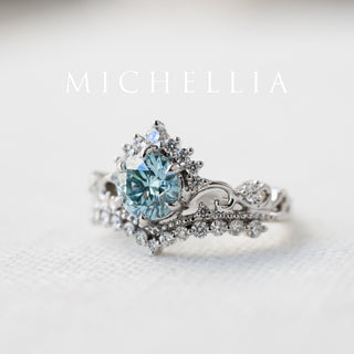 Theia IGI Certified Sky Blue Diamond Heirloom Crown Engagement Ring, 18K White Gold - One of A Kind & Ready-to-Ship |