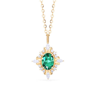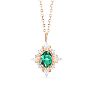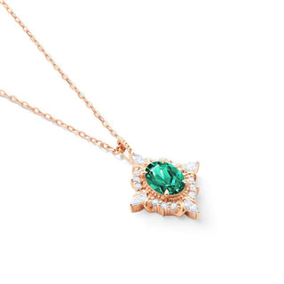 Alessandra Art Deco Oval Cut Necklace in Lab Emerald | N1006