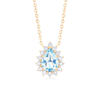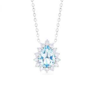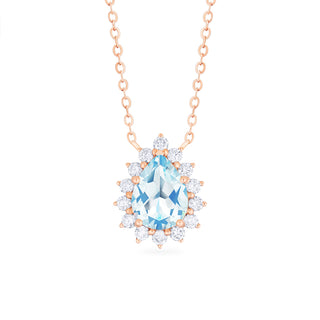 Camellia Vintage Bloom Pear Cut Necklace in Aquamarine