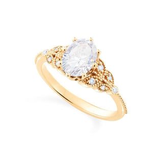 Olivia Classic Floral Oval Engagement Ring in Diamond / Moissanite | R2005
