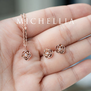 Roselyn Camellia Winter Rose Diamond Necklace & Earring Set - One of A Kind & Ready-to-Ship |