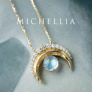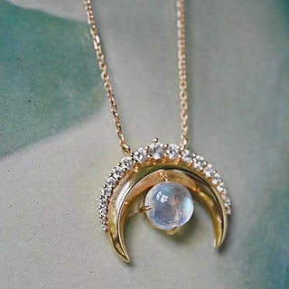 Crafted with over 8 grams of solid gold, this sailor moon inspired necklace brings a substantial, luxurious weight that feels as enduring as it is enchanting. We handpicked a rare specimen-quality natural moonstone in this special limited edition design. Accompanied by over 0.5 ctw of genuine white diamonds, this magical piece is our tribute to the enduring beauty and strength in every moonlit soul.