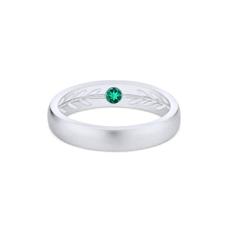 Silvanus Unisex Hidden Gemstone Laurel Leaf Wedding Band in Emerald | B7005