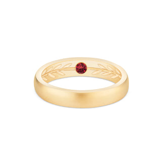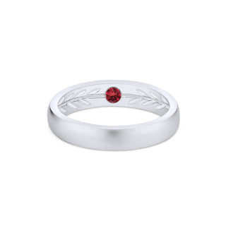 Silvanus Unisex Hidden Gemstone Laurel Leaf Wedding Band in Ruby | B7005