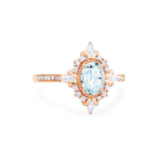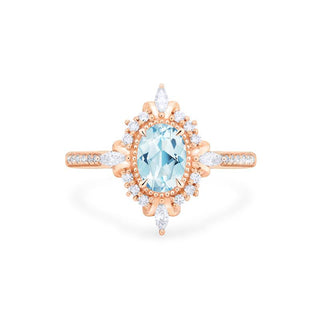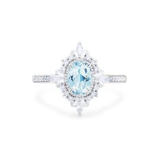 Alessandra Art Deco Oval Cut Ring in Aquamarine | R1006