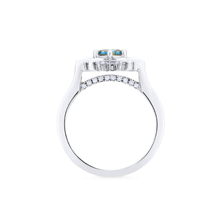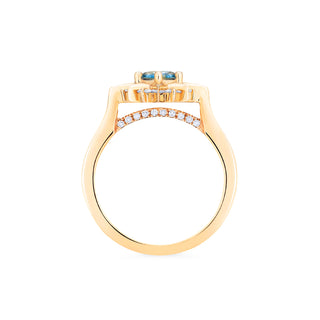 Astra, meaning "of the stars" in Greek, or "divine strength" in Latin. Taking the shape of a compass rose, Astra is meant to be more than a pretty symbol; Aside from her unmistakably celestial elegance, Astra is created to exemplify the clarity, compassion, balance, and determination it takes to achieve the most extraordinary dreams of our lives. A small row of sparkling diamonds sit hidden below the shank, adding unexpected intricacy along with ethereal brilliance - so she can be a light to you in dark places, when all other lights go out.
