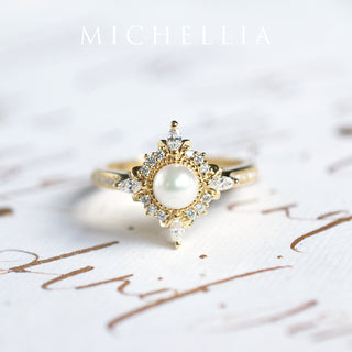 Astrid Art Deco Petite Ring in Akoya Pearl | R1007