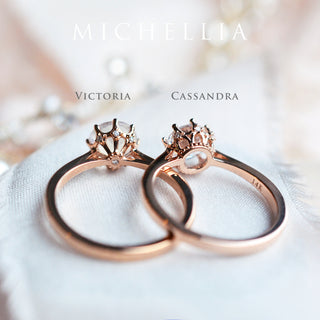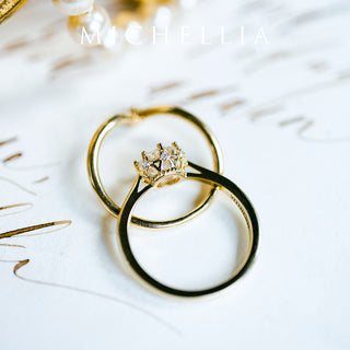 1Inspired by the timeless composition of royal jewels, our signature crown solitaire series is anything but your ordinary cookie-cutter solitaire. Capturing the essence of Michellia's core aesthetics, the series features a diamond-embellished crown setting and a perfectly polished band to juxtapose vintage sophistication with modern simplicity. A seemingly traditional style with just enough untraditional charms, Cassandra is classy, elegant, and authentically unique - as a quintessential Michellia bride should be.
