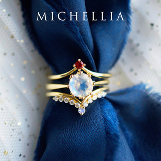 I love my Cassandra engagement ring! I’ve had it for a couple years now and am still in love. I get compliments on it all the time! We paired it with the Eva bands and they go perfectly with it! The center moonstone is beautiful even years later and the quality of all my rings is amazing. The michellia team was wonderful to work with - they helped us upsize the stone and made sure the ring was to our specifications! Highly recommend :)