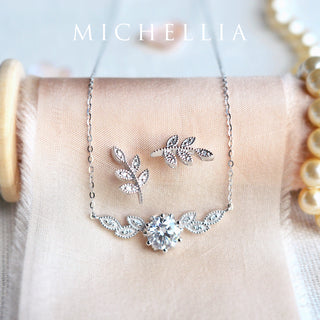 Dahlia Floral Leaf Necklace in Moonstone | N2002
