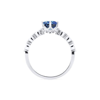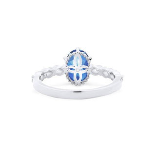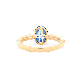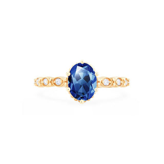 Evelina Vintage Classic Crown Oval Engagement Ring in Lab Blue Sapphire | R5001