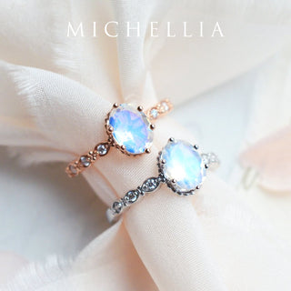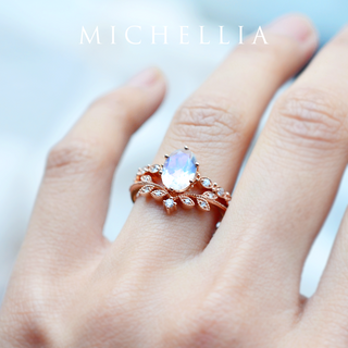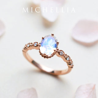 Bought this as an engagement ring for my (now) wife; it's superb. Michelle was professional and thoughtful in her support, and as (admittedly) clueless as I was going into this whole process, she was patient and caring with me as I articulated what I wanted in a ring. My wife loves it - the moonstone and rose gold is both delicate and powerful. Got a custom Lia band for our ceremony, and they fit beautifully. Love it!