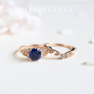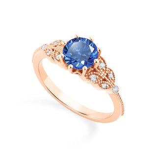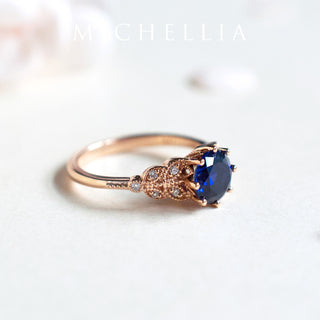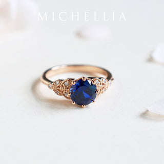 Kerensa Classic Floral Engagement Ring in Lab Blue Sapphire | R2006