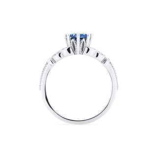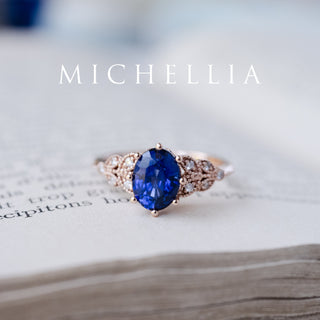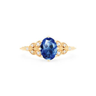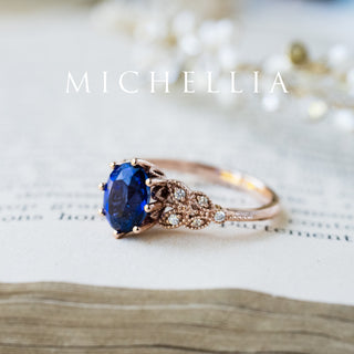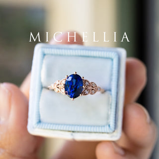 Olivia Classic Floral Oval Engagement Ring in Lab Blue Sapphire | R2005