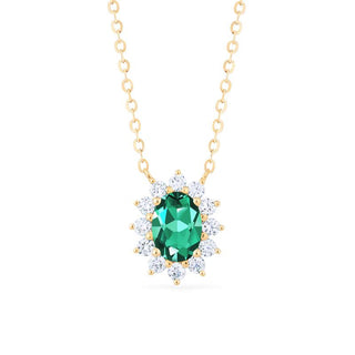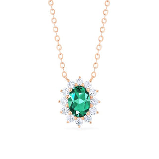 Julianne Vintage Bloom Oval Cut Necklace in Lab Emerald | N4010