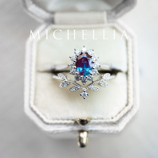 Julianne Vintage Bloom Oval Cut Ring in Lab Alexandrite | R4010