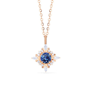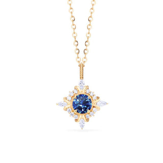 Astrid Art Deco Petite Necklace in Lab Blue Sapphire | N1007