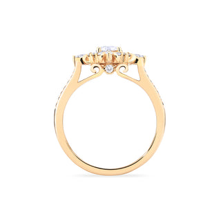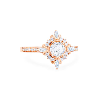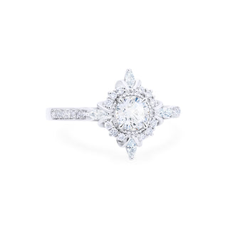 1A lovely sister to our signature Alessandra design, Astrid is designed for those who prefer a more delicate profile without compromising the art-deco inspired exquisiteness. Despite its size, Astrid's petite center stone is adorned with flourishing diamond accents, forming the striking visual effect of a much more pronounced vintage bloom. It doesn't always take a screaming multi-carat diamond to get noticed; as seen in Astrid, it's about staying at the very center of one's strength to make the boldest statement.