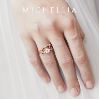 In the Victorian language of flowers, "Dahlia" denotes elegance and dignity. Enchanted with petals that fell upon the fairies and sun glitters that danced amongst the leaves, our Dahlia series is as magical as the ancient tales from a faraway woodland. The design features a delicate look with the petite-sized center stone, carefully mounted inside an exquisite floral lace setting and accompanied by diamond-dusted leaves. With a brisk walk into the woods, Dahlia will lead the way to a perfect modern day fairytale elopement.