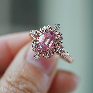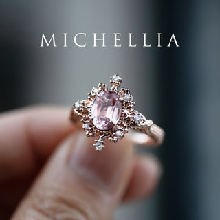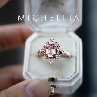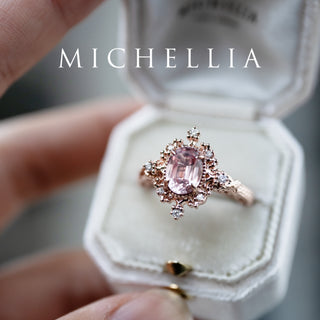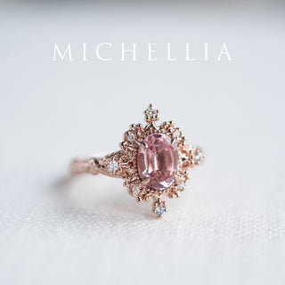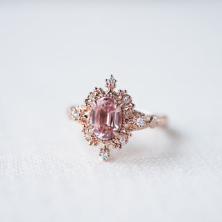 Marietta Ready-to-Ship Belle Époque Peach Pink Sapphire Oval Engagement Ring with Diamond, One of A Kind
