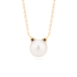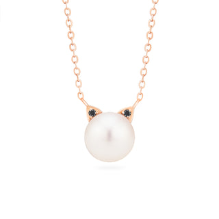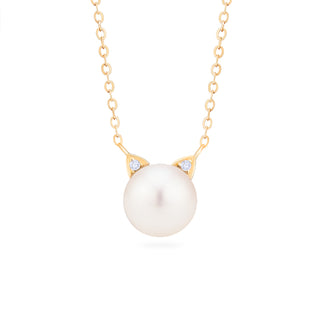 Snow White Pearl and Diamond Cat Necklace | N6001