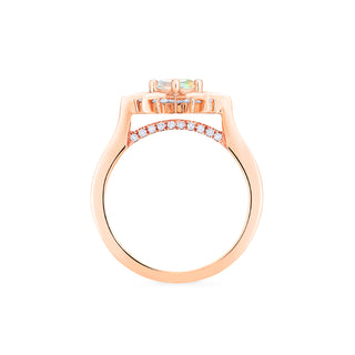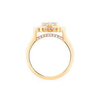 Astra, meaning "of the stars" in Greek, or "divine strength" in Latin. Taking the shape of a compass rose, Astra is meant to be more than a pretty symbol; Aside from her unmistakably celestial elegance, Astra is created to exemplify the clarity, compassion, balance, and determination it takes to achieve the most extraordinary dreams of our lives. A small row of sparkling diamonds sit hidden below the shank, adding unexpected intricacy along with ethereal brilliance - so she can be a light to you in dark places, when all other lights go out.