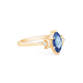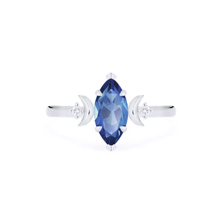 Cressida Moon Goddess Marquise Cut Ring in Lab Blue Sapphire | R3011
