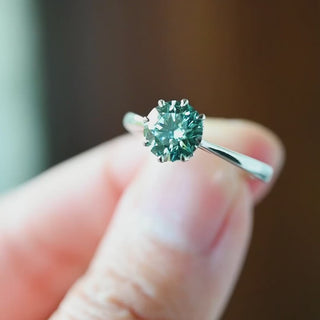 Our iconic Victoria setting meets the allure of the sea in this unforgettable solitaire ring. A rare teal blue diamond shimmers with the tranquil depths of hidden lagoons, its color evoking mermaid legends and sunlit waves. Dusted with delicate diamond accents in a royal-inspired crown setting, this OOAK Victoria ring feels at once timeless and otherworldly - a treasure worthy of a modern siren.