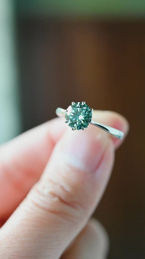 Victoria IGI Certified 1.29ct Mermaid Teal Blue Diamond Solitaire Engagement Ring, Platinum, One-of-A-Kind & Ready-to-Ship