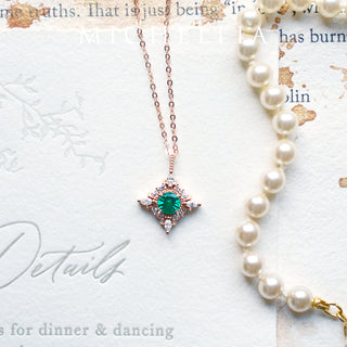 Astrid Art Deco Petite Necklace in Lab Emerald | N1007