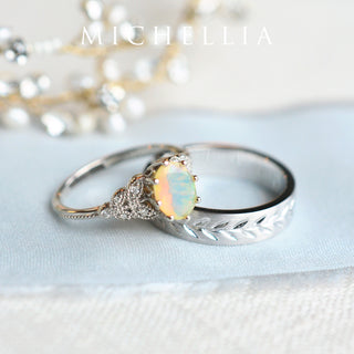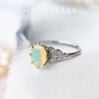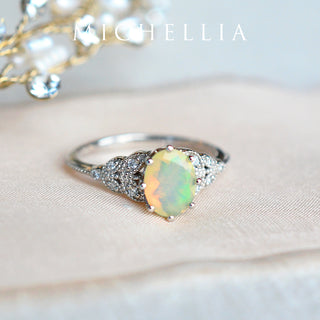 Olivia Classic Floral Oval Engagement Ring in Natural Australian Opal | R2005