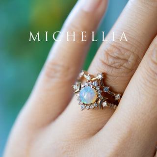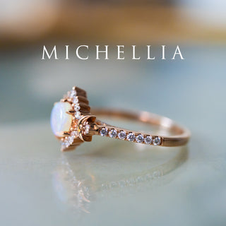 I purchased this ring as a gift for my wife and she fell in love with it at first sight. This one of a kind ring feels purely magical and is stunning to look at. The added diamonds on the band give it an additional sparkle and the opal is stunning with a beautiful orange flash. When a light is shined through the opal a bright orange beam of light comes through, and it looks like an eternal flame. Very pleased with my experience with Michellia and looking forward to purchasing from them again.