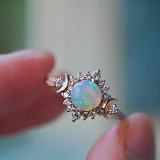 Selene Moon Goddess Australian Opal Engagement Ring, 18K Rose Gold - One of A Kind & Ready-to-Ship
