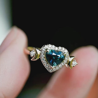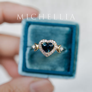 Seraphina Natural Teal Sapphire Heart Cut Moon Goddess Engagement Ring, 14K Yellow Gold - Ready to Ship & One of A Kind