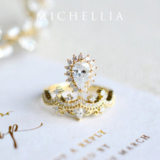 1Our Angelique Engagement Ring draws subtle inspiration from Venetian artistry, featuring a stunning pear-cut diamond at its center, embraced by a halo of radiant diamonds. Delicate vintage scrolls wind around the band, echoing the refined elegance of old-world craftsmanship. The intricate details, reminiscent of Venetian ironwork and architecture, offer a timeless blend of romance and luxury, making Angelique a true symbol of love’s enduring beauty.