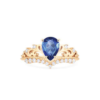 Francesca Heirloom Crown Pear Engagement Ring in Blue Sapphire | R1014