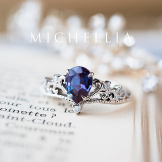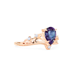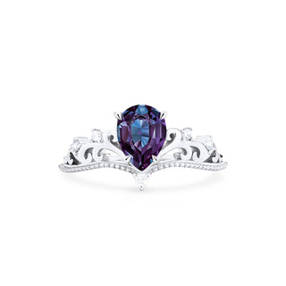 Veronica Vintage Crown Pear Cut Ring in Lab Alexandrite | R1004