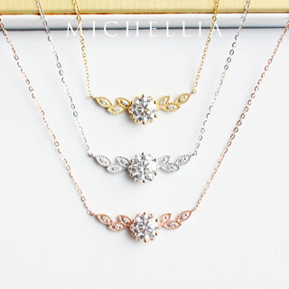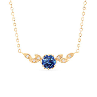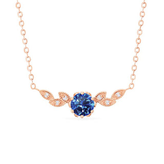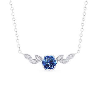 Dahlia Floral Leaf Necklace in Lab Blue Sapphire | N2002