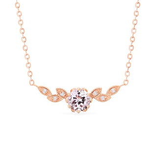 Dahlia Floral Leaf Necklace in Morganite | N2002