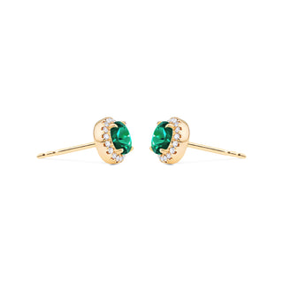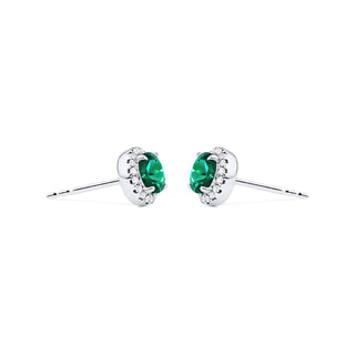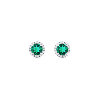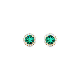 Nova Petite Halo Diamond Earrings in Lab Emerald | E4001