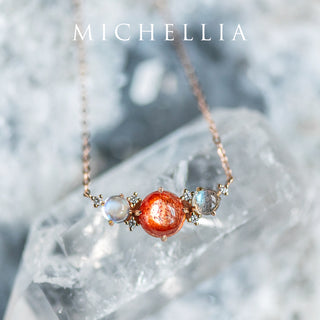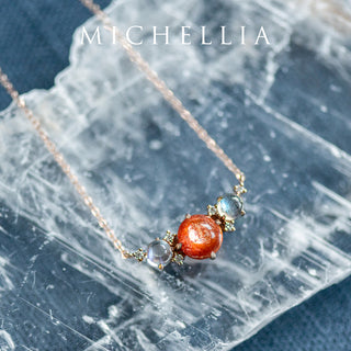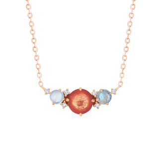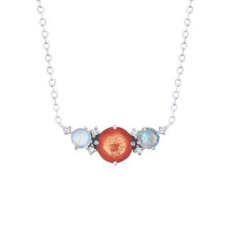 Celestine Galaxy Trio Three Stone Necklace in Sunstone, Moonstone, and Labradorite | N3004