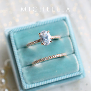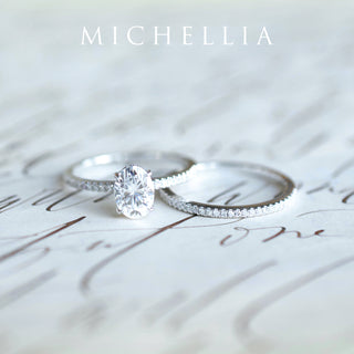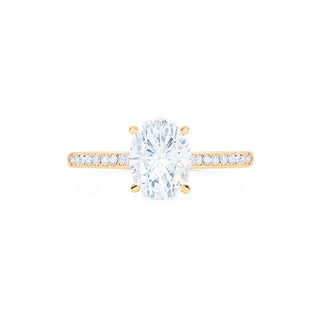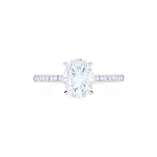 Elaine Classic Oval Solitaire Engagement Ring with Hidden Halo in Diamond / Moissanite | R4005