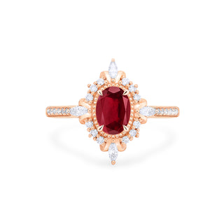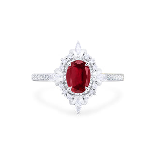 Alessandra Art Deco Oval Cut Ring in Lab Red Ruby | R1006