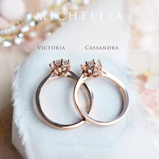 Inspired by the timeless composition of royal jewels, our signature crown solitaire series is anything but your ordinary cookie-cutter solitaire. Capturing the essence of Michellia's core aesthetics, the series features a diamond-embellished crown setting and a perfectly polished band to juxtapose vintage sophistication with modern simplicity. A seemingly traditional style with just enough untraditional charms, Victoria is classy, elegant, and authentically unique - as a quintessential Michellia bride should be.