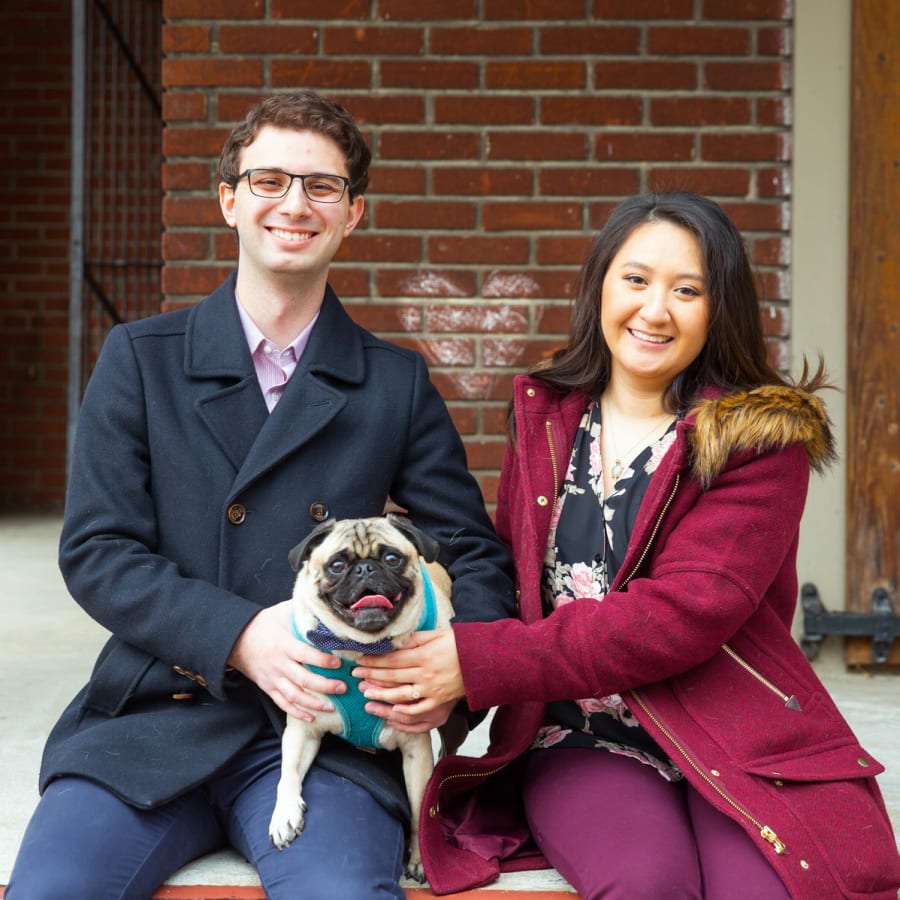 After 19 years since our first meeting as kids, Slava popped the question on December 17th, 2017! He had a friend invite us to a “fancy brunch” and told us to meet up at an old historic manor. Slava then proposed in the gardens, to which I yelled “OMG IS THIS REAL?” and of course “YES!” There turned out to be a photographer there that Slava had hired to capture everything and also do a photoshoot with us afterwards. Slava also had our friend secretly kidnap our pug, Henry to bring him by to join in on the photos! We then went out to a nice restaurant by the waterfront for a (late) lunch to celebrate, just the two of us. I spent the whole day after the proposal (heck, the whole month!) just staring at my ring and new fiancé in awe.