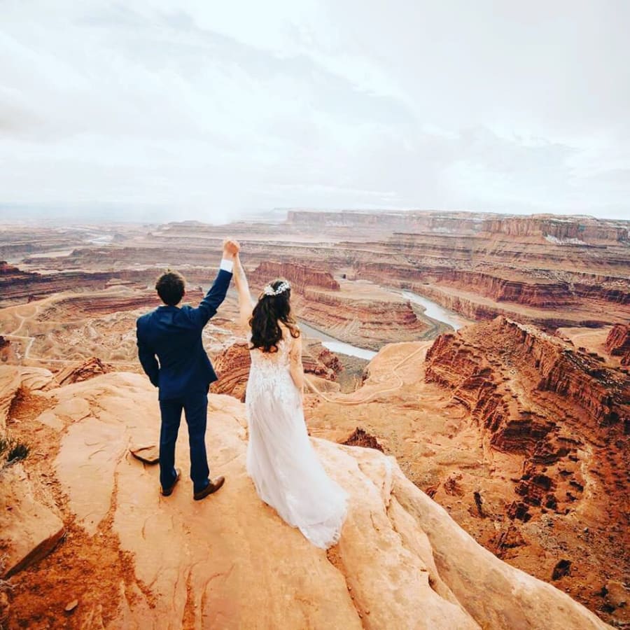 The change of plans was pretty short notice, but my wedding band arrived just in time - So did our parents and one of our good friends who officiated the wedding. All together, 10 of us stood cliff side as we made our personal vows overlooking Dead Horse Point with our 3 legged dog right beside us. It couldn't have been more perfect.