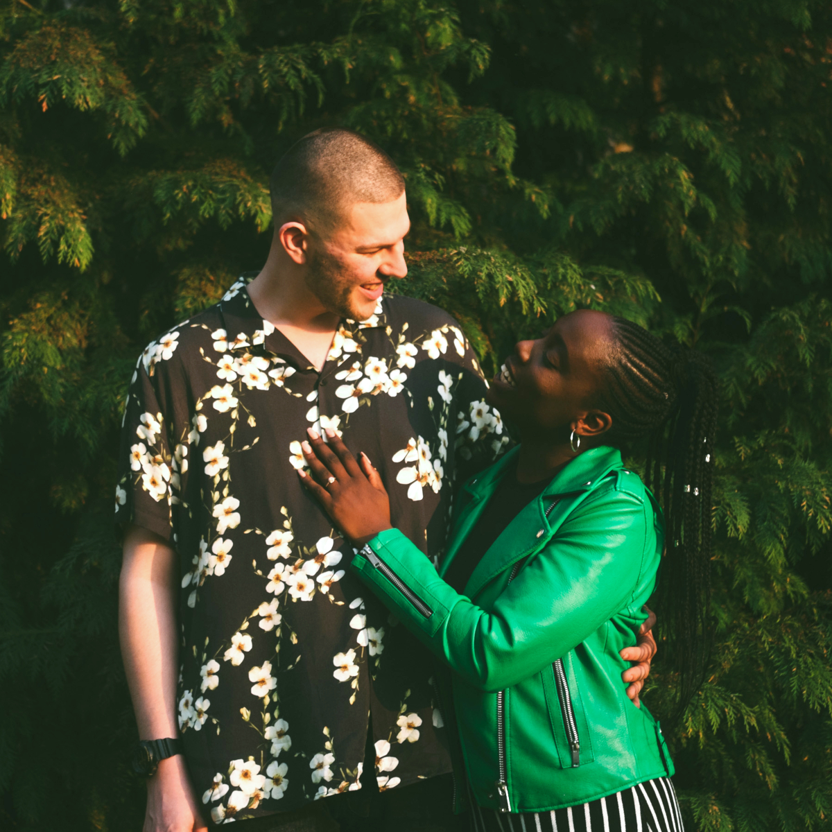 We met in 2014 through singing at our church together. The first time that I sang on stage somebody tapped me and told me “you did a great job up there”, little did I know that would be my future husband! We dated for almost three years and we had a blast! In April 2018 everything changed...I was asked to be in an interview about couples and relationships and I said yes. We went over to the studio, answered many questions about our relationship in front of the camera. The final question was "Where do you see yourself in five years time?". I answered truthfully that I’d hope to be married but at the right time. Jonny then went on to talk about us and our relationship and he got down on one knee! I was so shocked and couldn’t believe that the whole interview was set up just for the proposal. One of our friends who is an amazing photographer came in and we had our engagement shoot right outside! The sun was setting and the lighting was perfect on that Saturday afternoon. I couldn’t stop looking at my beautiful ring! I fell in love with the ring a year before we got engaged but Jonny tricked me into thinking he had got something else. Thank you Michellia for all that you have done for us. You have played such a special part in our love story!